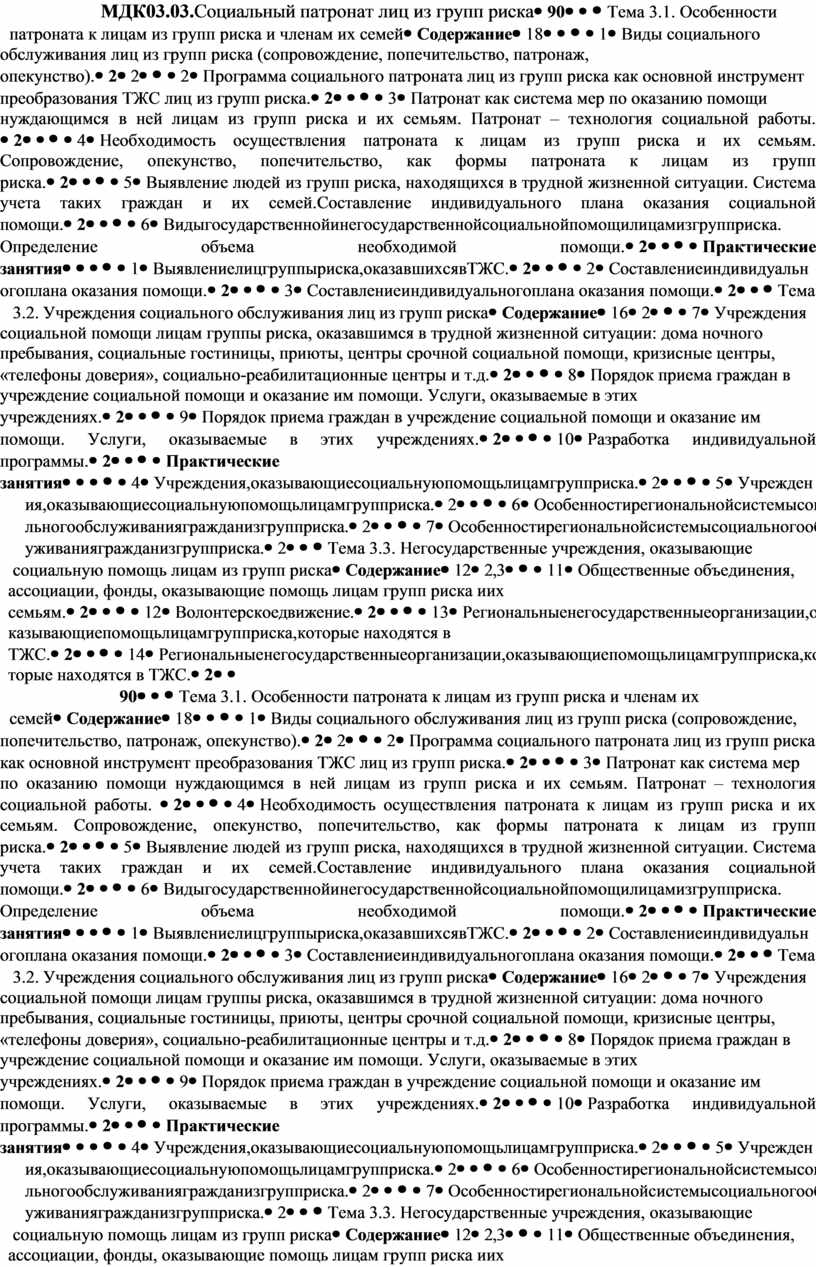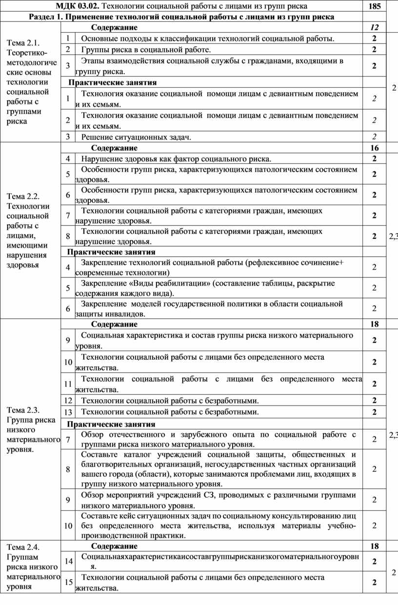 МДК.03.02 Технологии социальной работы с лицами из групп риска МДК.03.03 Социальный патронат лиц из групп риска