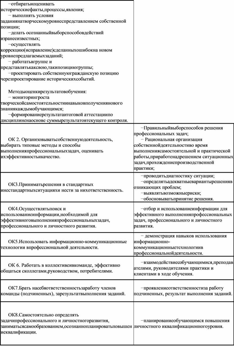 ОК 2. Организовыватьсобственнуюдеятельность, выбирать типовые методы и способы выполненияпрофессиональныхзадач, оценивать ихэффективностьикачество. |