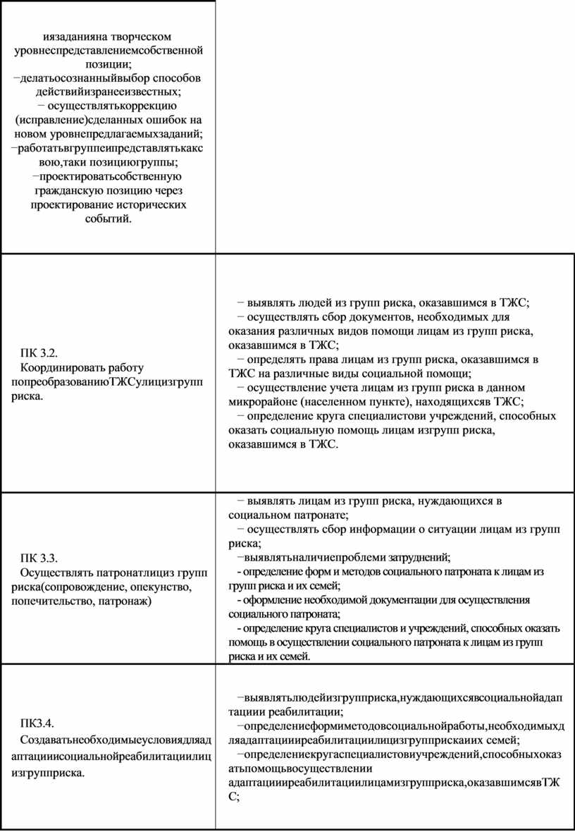 ПК3.4. Создаватьнеобходимыеусловиядляадаптацииисоциальнойреабилитациилиц изгрупприска. |