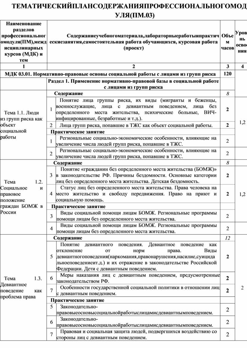 МДК.03.01 Нормативно-правовая основа социальной работы с лицами из групп риска