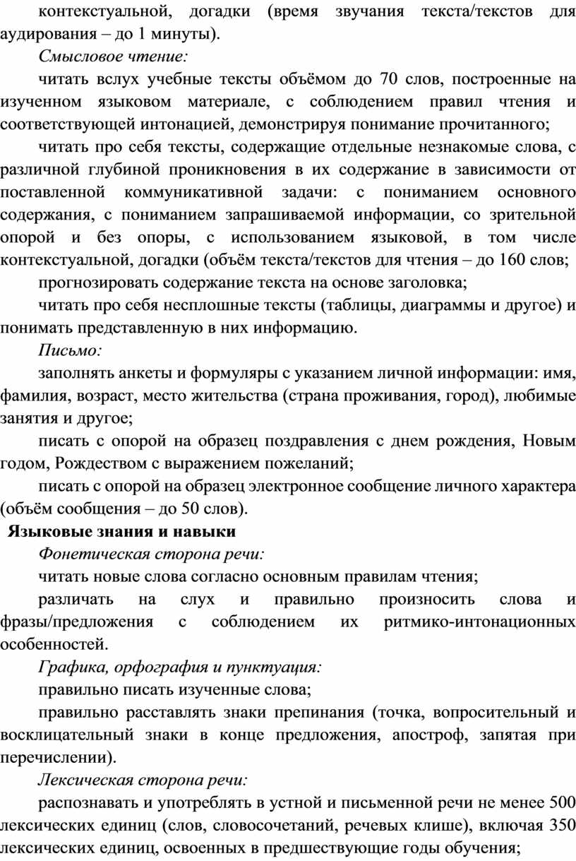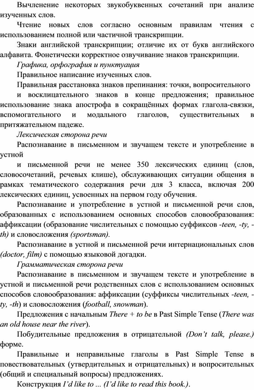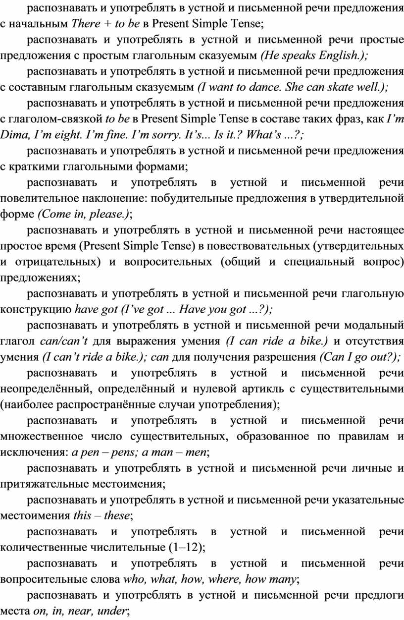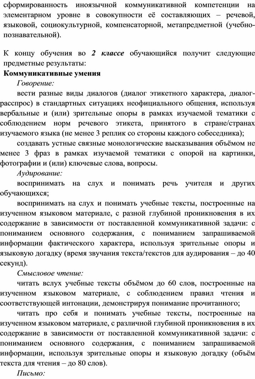 Распознавание и употребление в устной и письменной речи не менее 200 лексических единиц (слов, словосочетаний, речевых клише), обслуживающих ситуации общения в рамках тематического содержания речи для 2 класса.