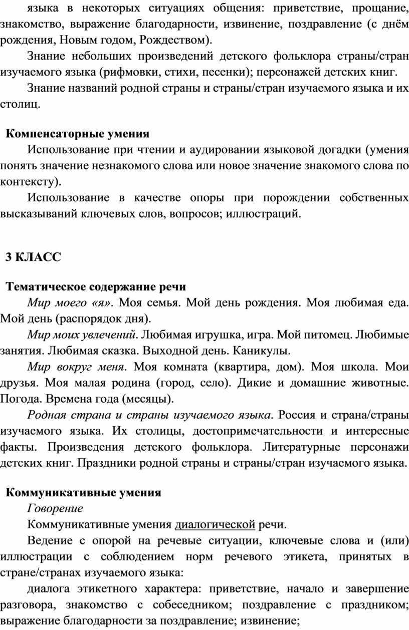 Родная страна и страны изучаемого языка. Названия родной страны и страны/стран изучаемого языка; их столиц. Произведения детского фольклора. Литературные персонажи детских книг. Праздники родной страны и страны/стран изучаемого языка (Новый год, Рождество).