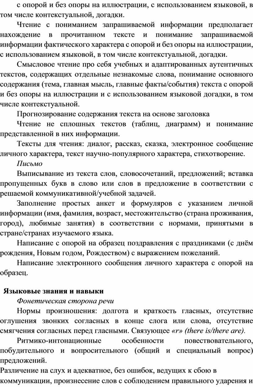 Чтение с пониманием запрашиваемой информации предполагает нахождение в прочитанном тексте и понимание запрашиваемой информации фактического характера с опорой на иллюстрации и с использованием языковой догадки.