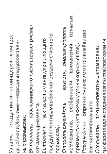 Знакомиться с приёмами исполнения традиционных орнаментов, украшающих посуду Гжели и Хохломы; осваивать простые кистевые приёмы, свойственные этим промыслам; выполнить эскизы орнаментов, украшающих посуду (по мотивам выбранного художественного промысла).