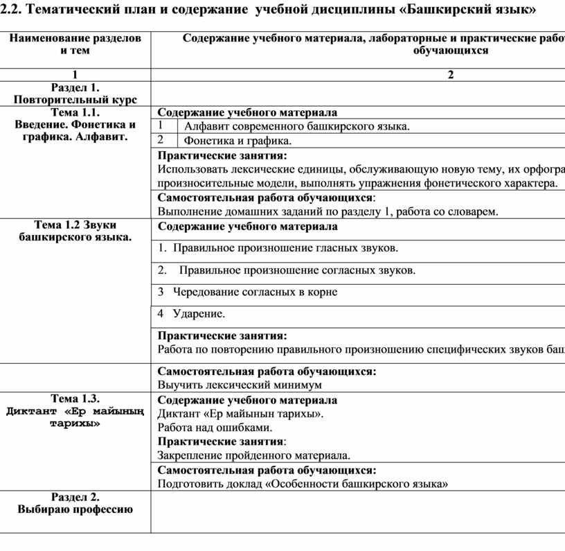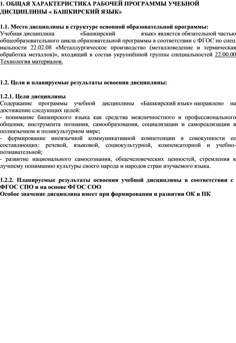 1. ОБЩАЯ ХАРАКТЕРИСТИКА рабочей ПРОГРАММЫ учебной ДИСЦИПЛИНЫ « БАШКИРСКИЙ ЯЗЫК»