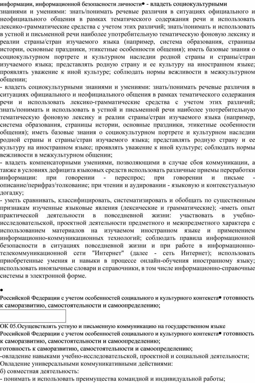 ОК 05.Осущевствлять устную и письменную коммуникацию на государственном языке Российской Федерации с учетом особенностей социального и культурного контекста |
