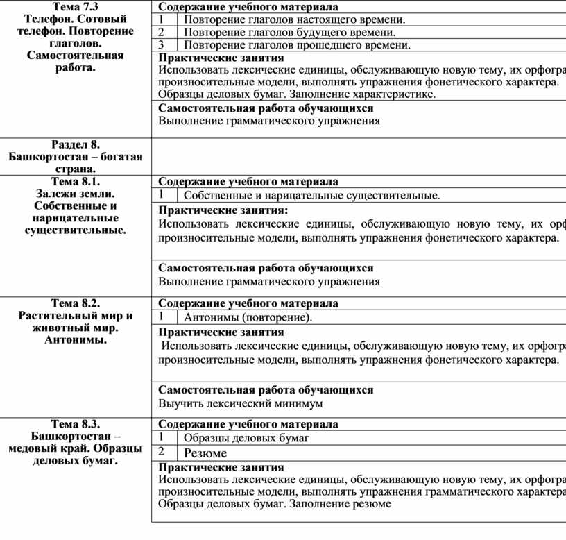 Тема 8.3. Башкортостан – медовый край. Образцы деловых бумаг. |
