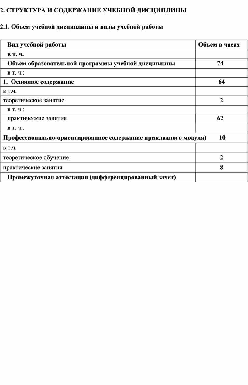 2.СТРУКТУРА и содержание учебной ДИСЦИПЛИНЫ