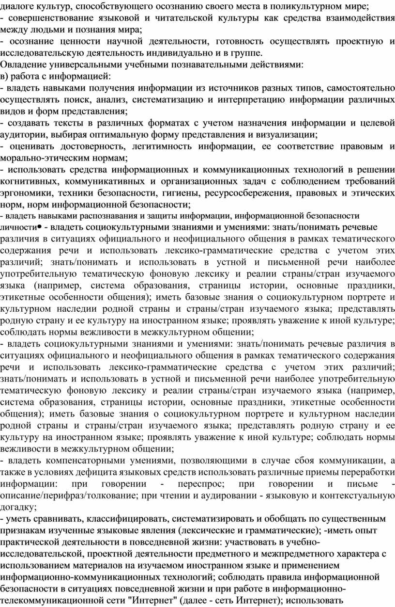 - владеть социокультурными знаниями и умениями: знать/понимать речевые различия в ситуациях официального и неофициального общения в рамках тематического содержания речи и использовать лексико-грамматические средства с учетом этих различий; знать/понимать и использовать в устной и письменной речи наиболее употребительную тематическую фоновую лексику и реалии страны/стран изучаемого языка (например, система образования, страницы истории, основные праздники, этикетные особенности общения); иметь базовые знания о социокультурном портрете и культурном наследии родной страны и страны/стран изучаемого языка; представлять родную страну и ее культуру на иностранном языке; проявлять уважение к иной культуре; соблюдать нормы вежливости в межкультурном общении; - владеть компенсаторными умениями, позволяющими в случае сбоя коммуникации, а также в условиях дефицита языковых средств использовать различные приемы переработки информации: при говорении - переспрос; при говорении и письме - описание/перифраз/толкование; при чтении и аудировании - языковую и контекстуальную догадку; - уметь сравнивать, классифицировать, систематизировать и обобщать по существенным признакам изученные языковые явления (лексические и грамматические); -иметь опыт практической деятельности в повседневной жизни: участвовать в учебно-исследовательской, проектной деятельности предметного и межпредметного характера с использованием материалов на изучаемом иностранном языке и применением информационно-коммуникационных технологий; соблюдать правила информационной безопасности в ситуациях повседневной жизни и при работе в информационно-телекоммуникационной сети "Интернет" (далее - сеть Интернет); использовать приобретенные умения и навыки в процессе онлайн-обучения иностранному языку; использовать иноязычные словари и справочники, в том числе информационно-справочные системы в электронной форме.