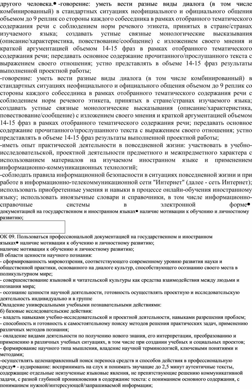 ОК 09. Пользоваться профессиональной документацией на государственном и иностранном языках |