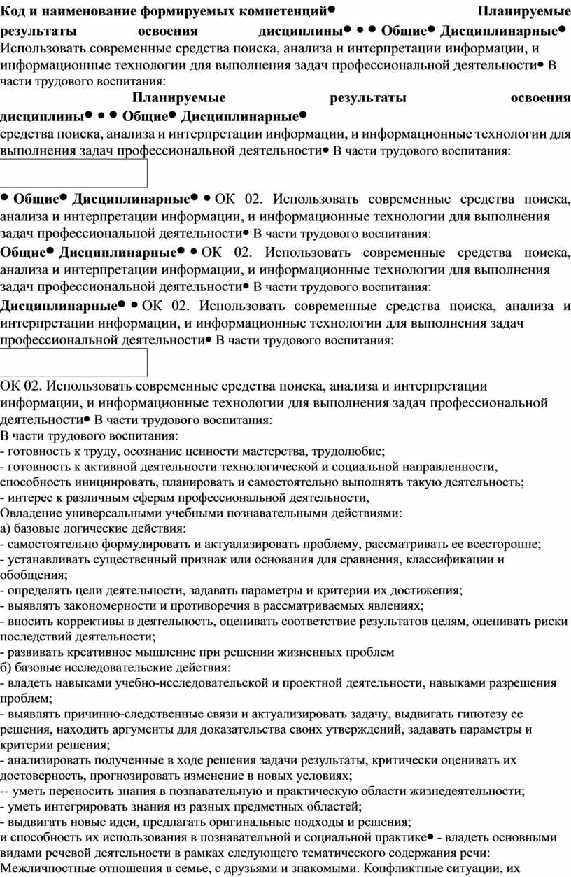 ОК 02. Использовать современные средства поиска, анализа и интерпретации информации, и информационные технологии для выполнения задач профессиональной деятельности |