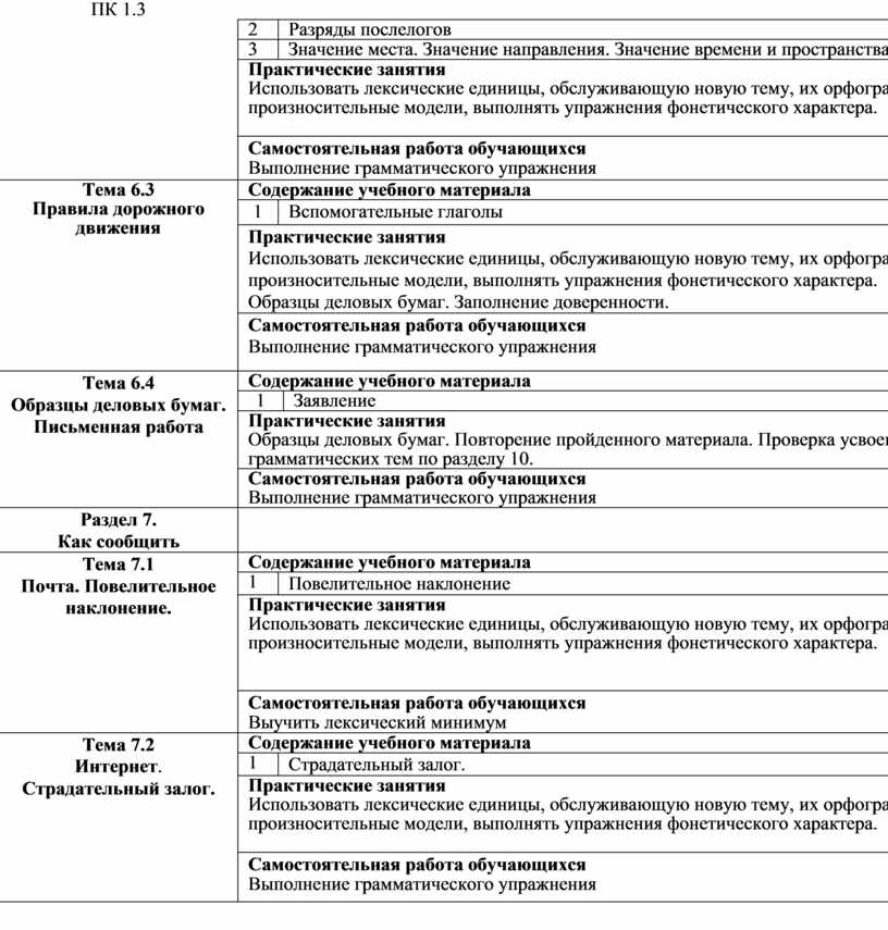 Практические занятия Образцы деловых бумаг. Повторение пройденного материала. Проверка усвоения пройденных лексических и грамматических тем по разделу 10. |