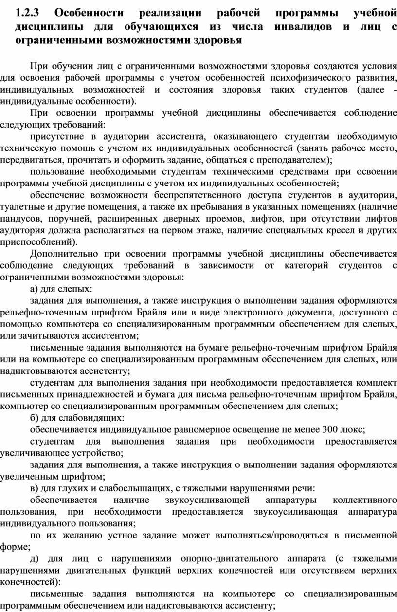 1.2.3 Особенности реализации рабочей программы учебной дисциплины для обучающихся из числа инвалидов и лиц с ограниченными возможностями здоровья