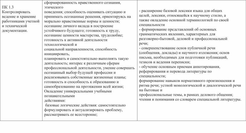 ПК 1.3. Контролировать ведение и хранение работниками учетной и технической документации.