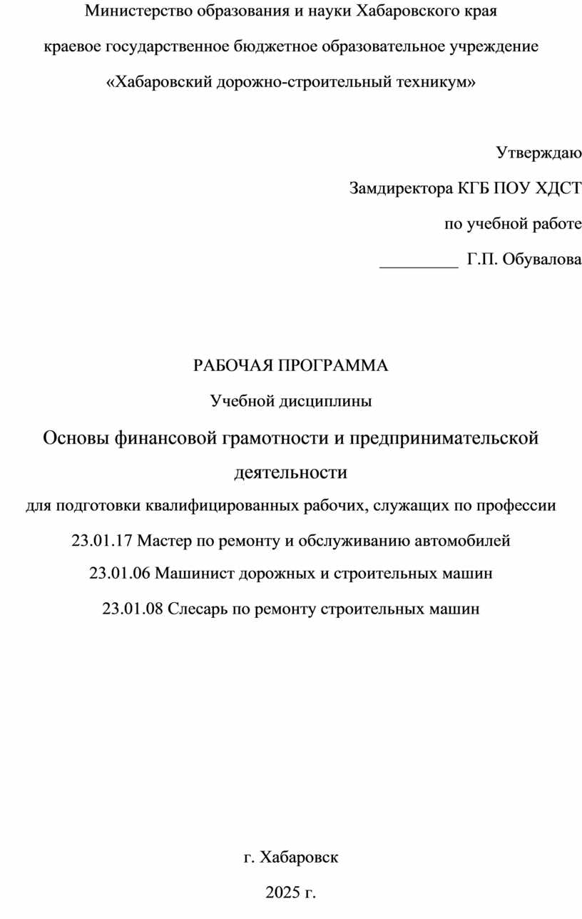 Рабочая программа учебной дисциплины является частью основной профессиональной образовательной программы в соответствии с ФГОС по профессии: 23.01.17 Мастер по ремонту и обслуживанию автомобилей, 23.01.06 Машинист дорожных и строительных машин, 23.01.08 Слесарь по ремонту строительных машин