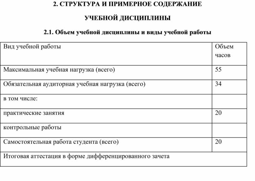 2. СТРУКТУРА И ПРИМЕРНОЕ СОДЕРЖАНИЕ