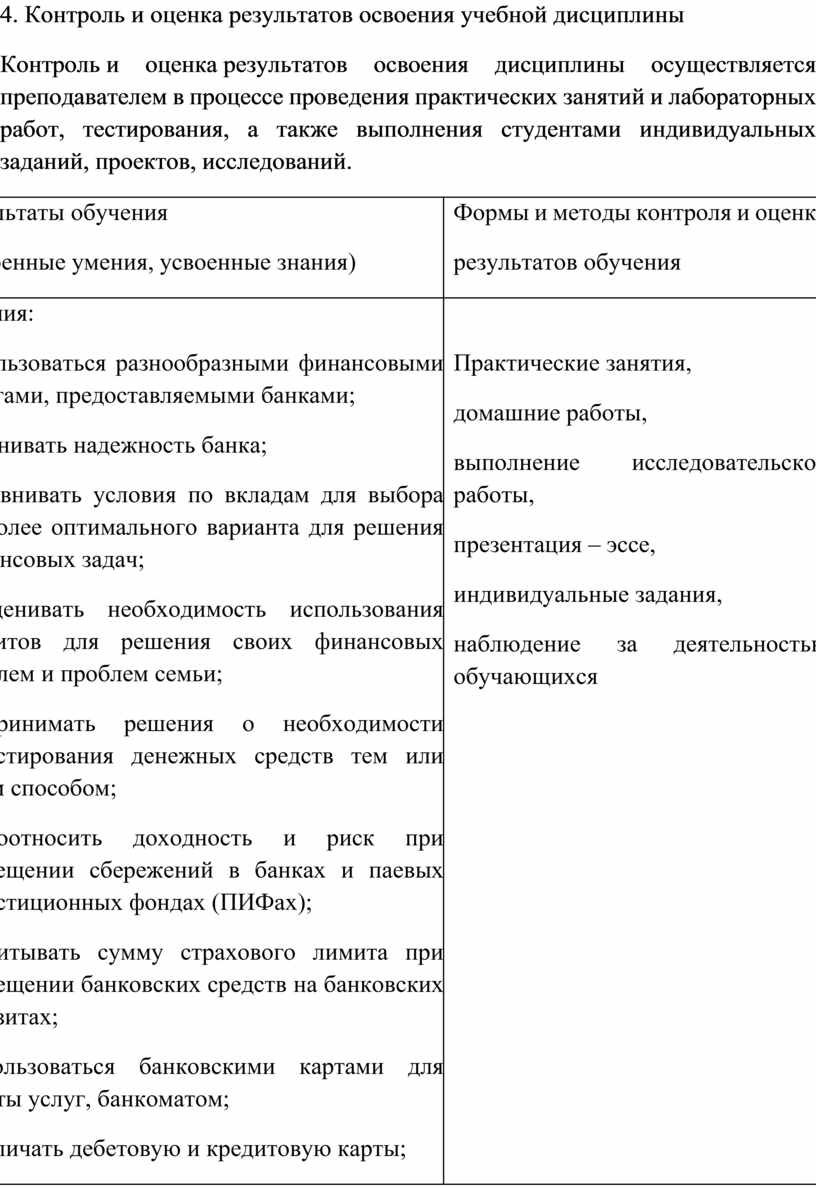 4. Контроль и оценка результатов Освоения учебной дисциплины