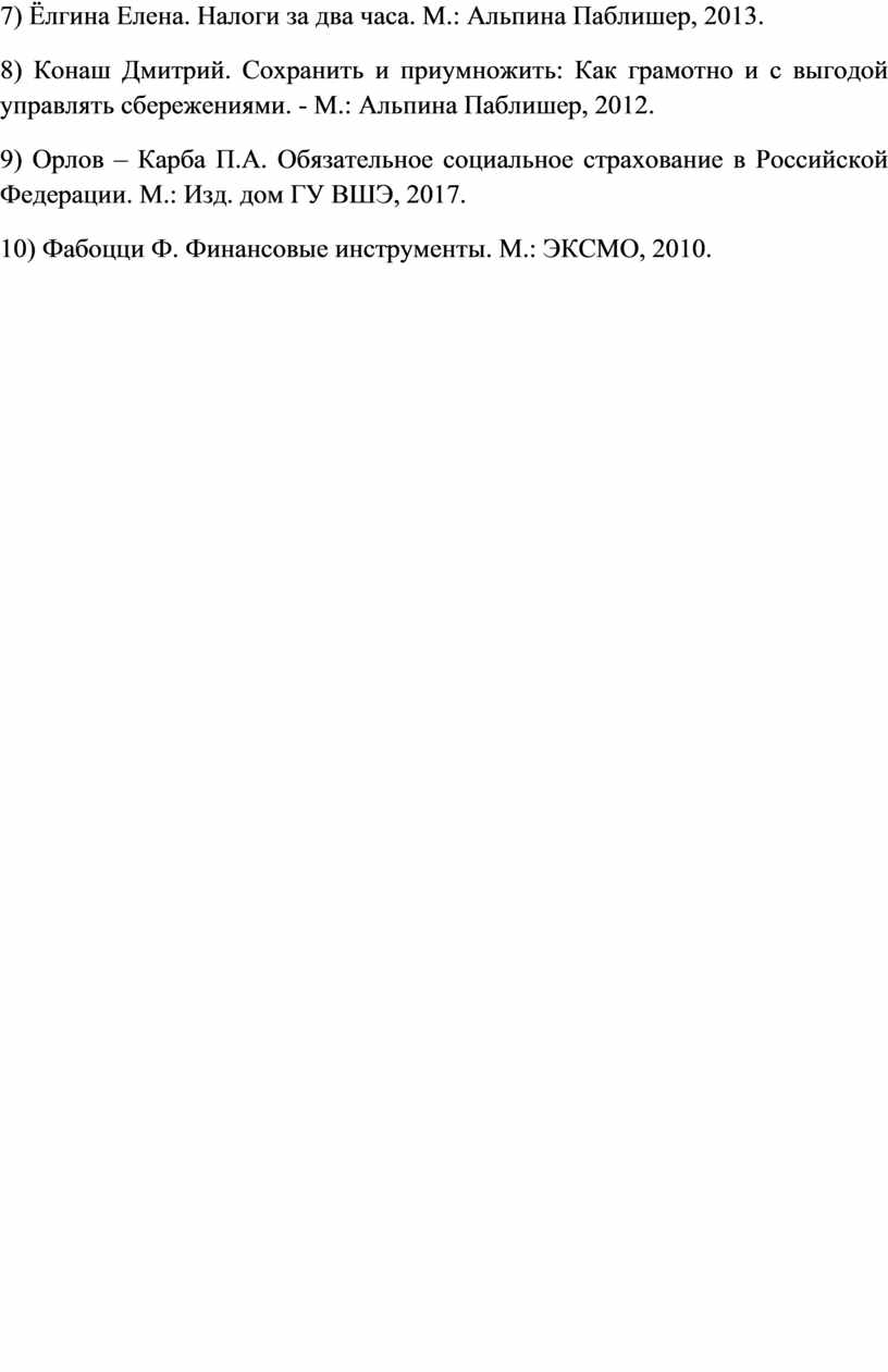 9) Орлов – Карба П.А. Обязательное социальное страхование в Российской Федерации. М.: Изд. дом ГУ ВШЭ, 2017.