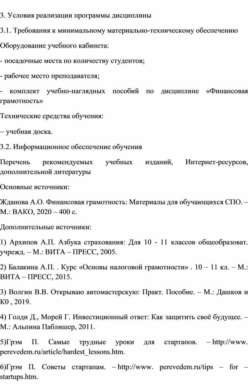 Жданова А.О. Финансовая грамотность: Материалы для обучающихся СПО. – М.: ВАКО, 2020 – 400 с.