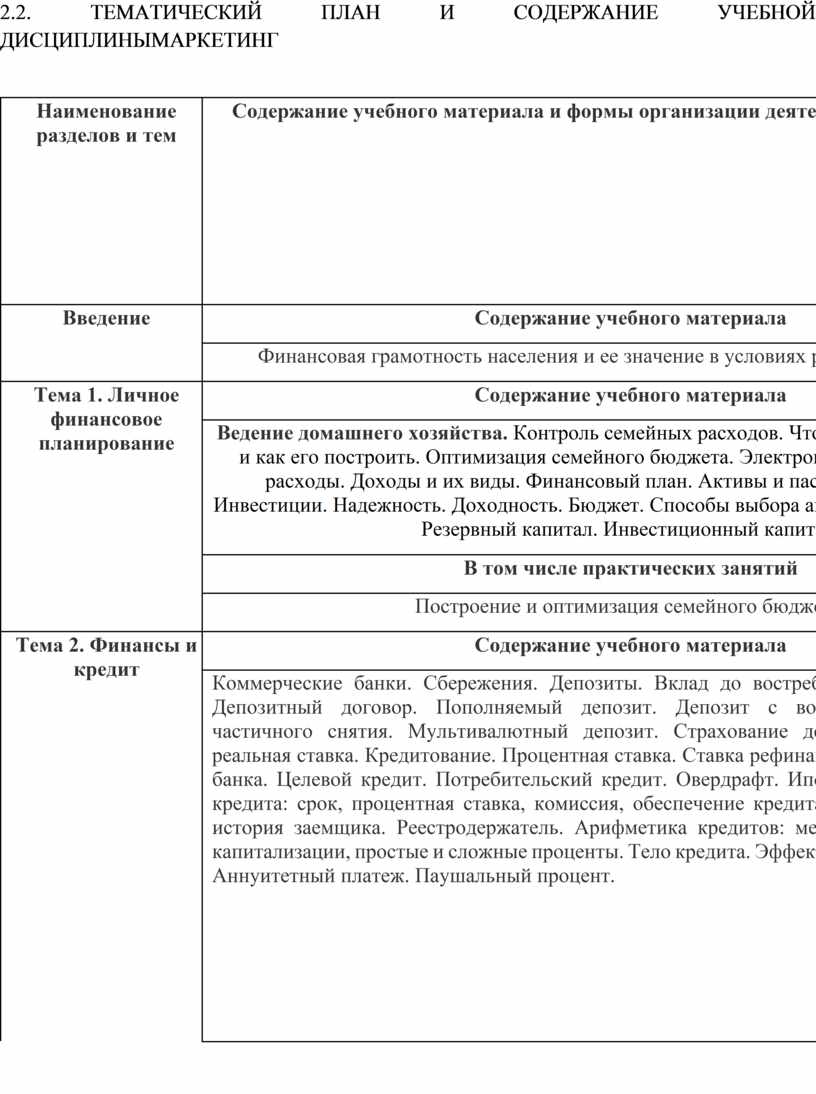 2.2. ТЕМАТИЧЕСКИЙ ПЛАН И СОДЕРЖАНИЕ УЧЕБНОЙ ДИСЦИПЛИНЫМАРКЕТИНГ