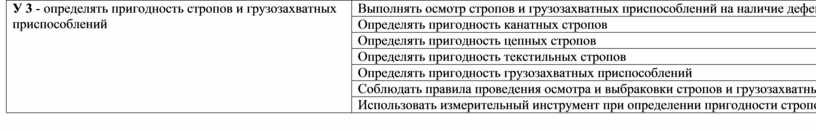У 3 - определять пригодность стропов и грузозахватных приспособлений |