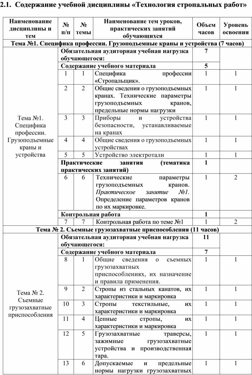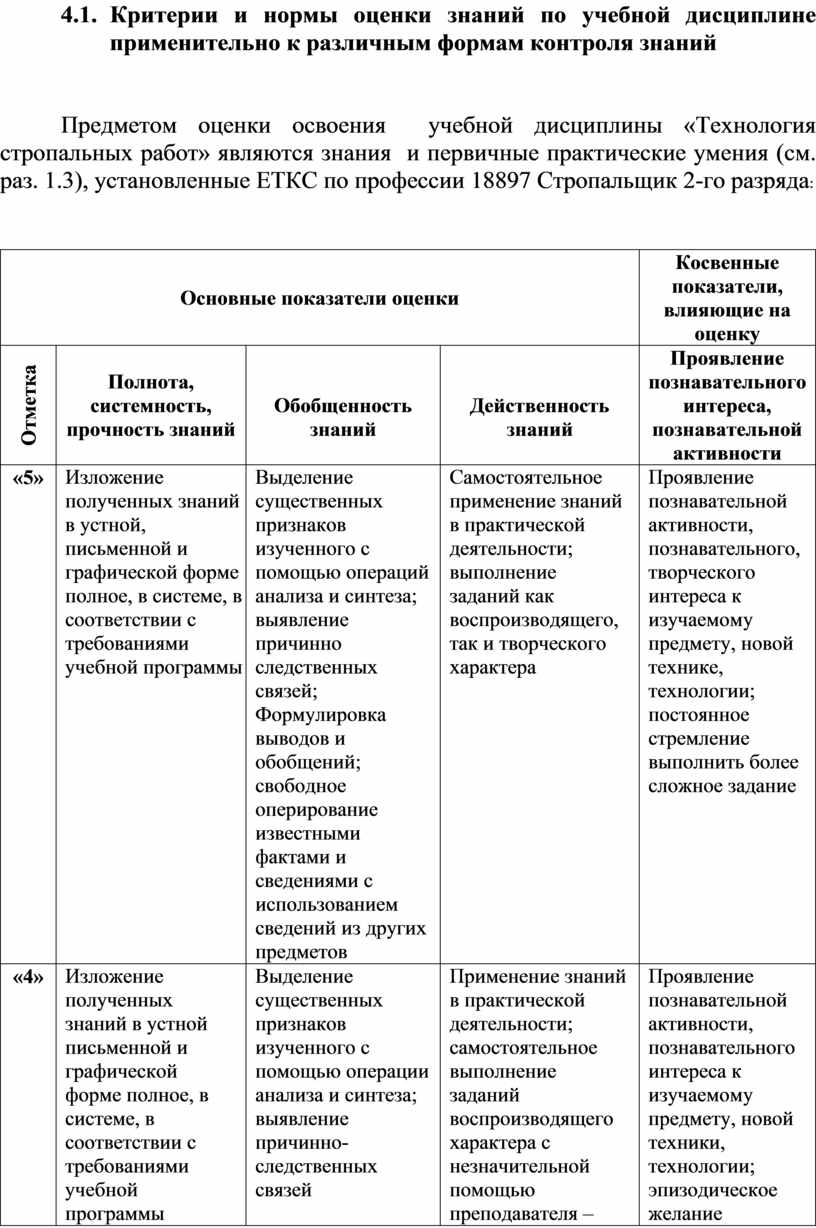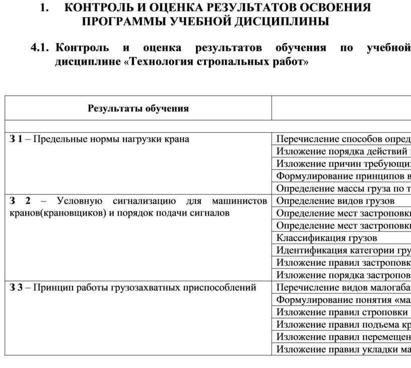 Предметом оценки освоения учебной дисциплины «Технология стропальных работ» являются знания и первичные практические умения (см. раз. 1.3), установленные ЕТКС по профессии 18897 Стропальщик 2-го разряда:
