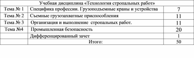 Учебная дисциплина «Технология стропальных работ» входит в профессиональный цикл.