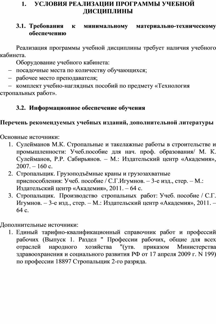 Рабочая программа учебной дисциплины «Технология стропальных работ» разработана на основе квалификационных требований, установленных Единым тарифно-квалификационным справочником работ и профессий рабочих, выпуск 1, раздел "Профессии рабочих, общие для всех отраслей народного хозяйства" для профессии 18897 Стропальщик 3-го разряда