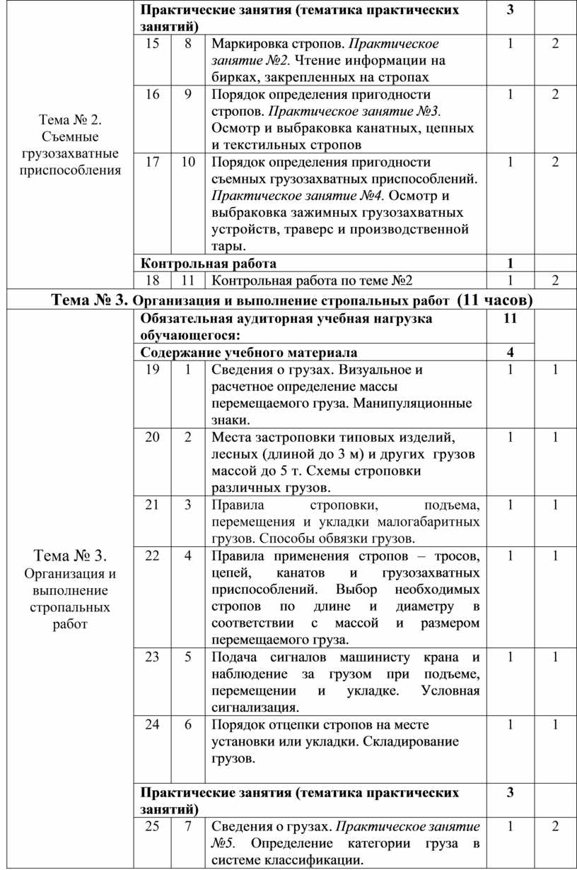 Изложение правил выбора необходимых стропов по длине и диаметру в соответствии с массой груза |