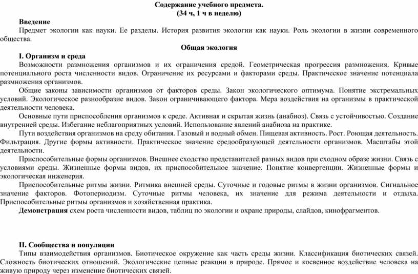 Учебный предмет экология входит в предметную область «Естественнонаучные дисциплины», изучается на базовом уровне.