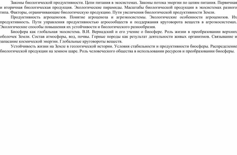 Понимать последствия человеческой деятельности в использовании ресурсов и преобразовании Биосферы. Понимать условия стабильности и продуктивности биосферы. |