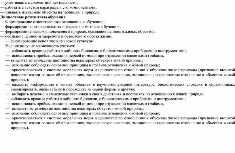 1. Обеспечить усвоение учащимися основных положений биологической науки о строении, жизнедеятельности организма человека; об его индивидуальном и историческом развитии; о системе органического мира, структуре и функционировании человеческого общества.