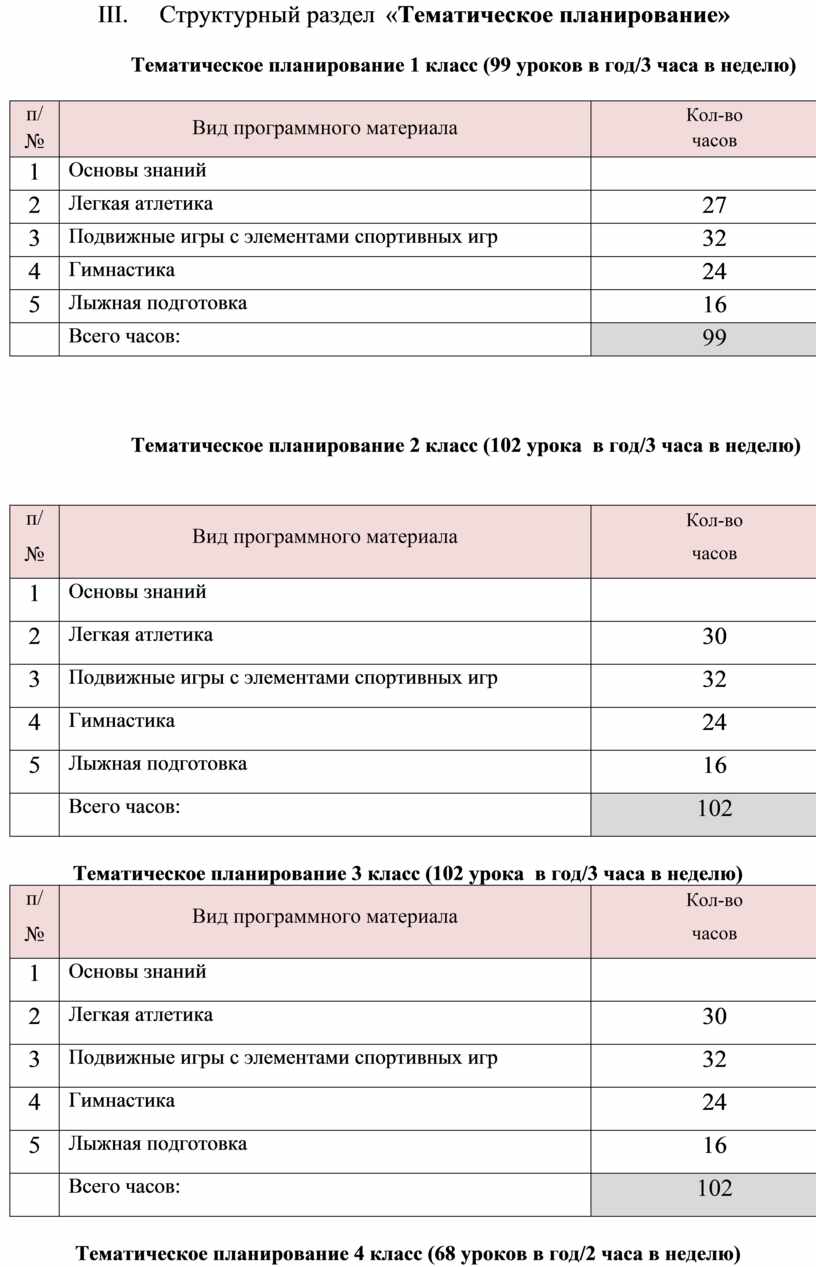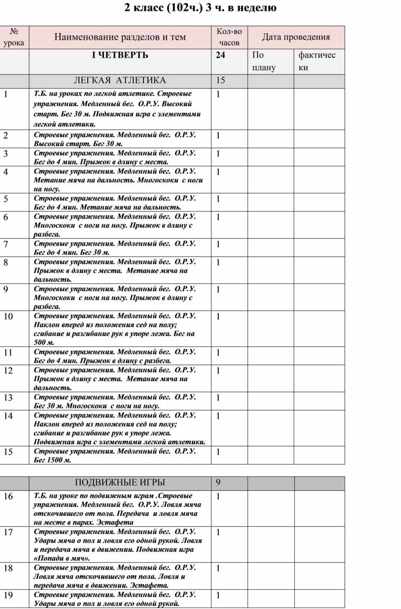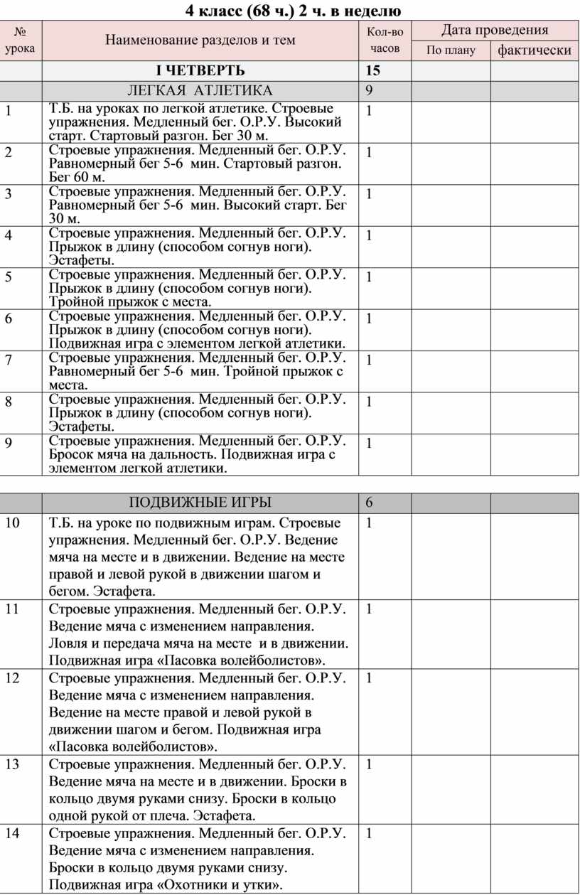 4 класс (68 ч.) 2 ч. в неделю