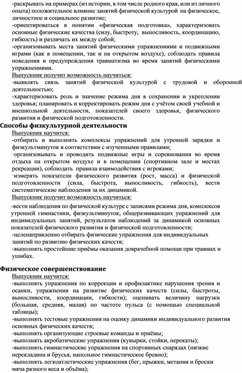 -раскрывать на примерах (из истории, в том числе родного края, или из личного опыта) положительное влияние занятий физической культурой на физическое, личностное и социальное развитие;