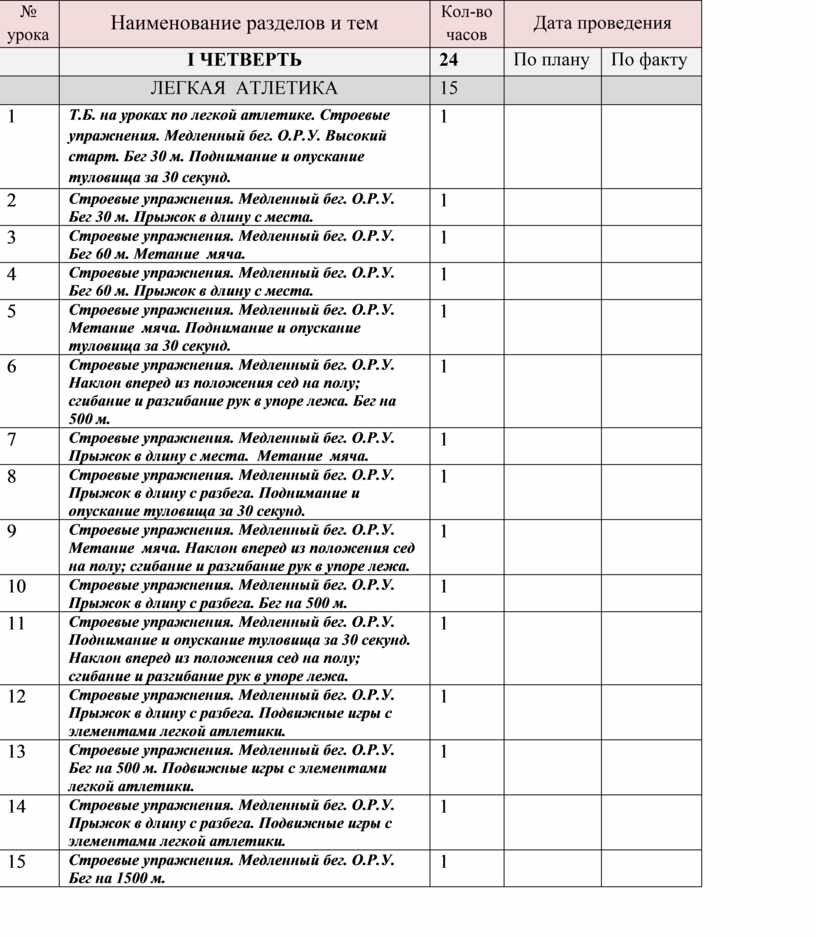 Т.Б. на уроках по легкой атлетике. Строевые упражнения. Медленный бег. О.Р.У. Высокий старт. Стартовый разгон. Бег 30 м. |