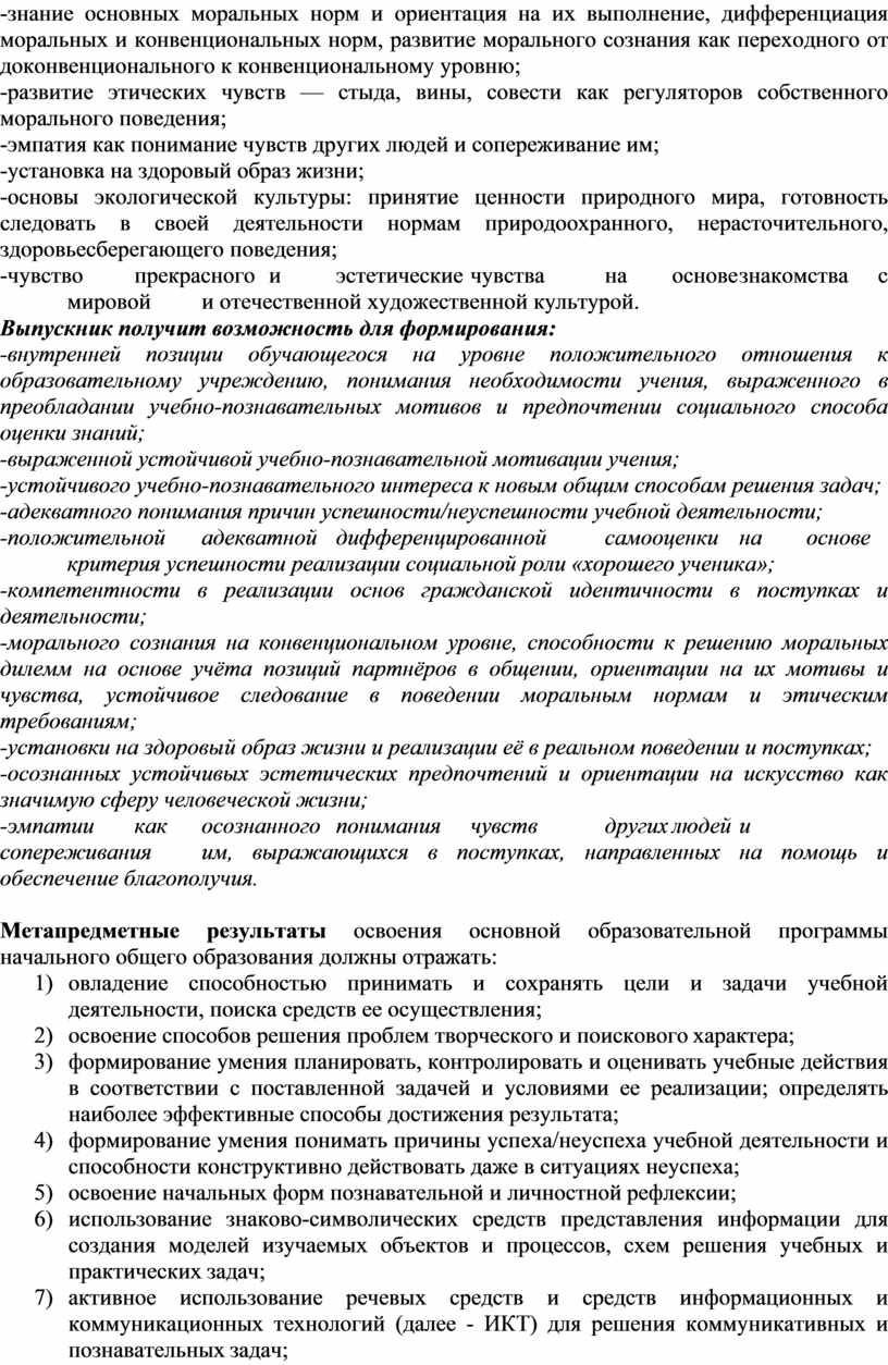 -морального сознания на конвенциональном уровне, способности к решению моральных дилемм на основе учёта позиций партнёров в общении, ориентации на их мотивы и чувства, устойчивое следование в поведении моральным нормам и этическим требованиям;
