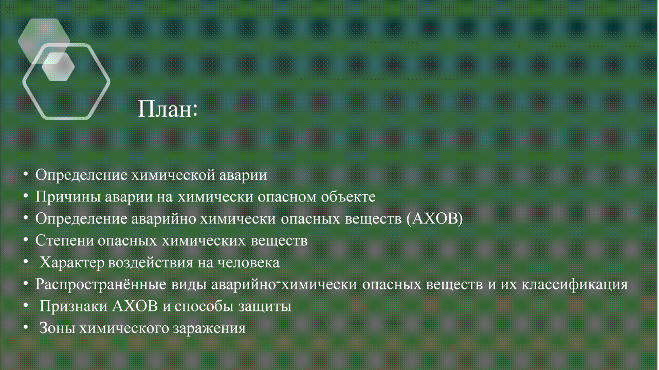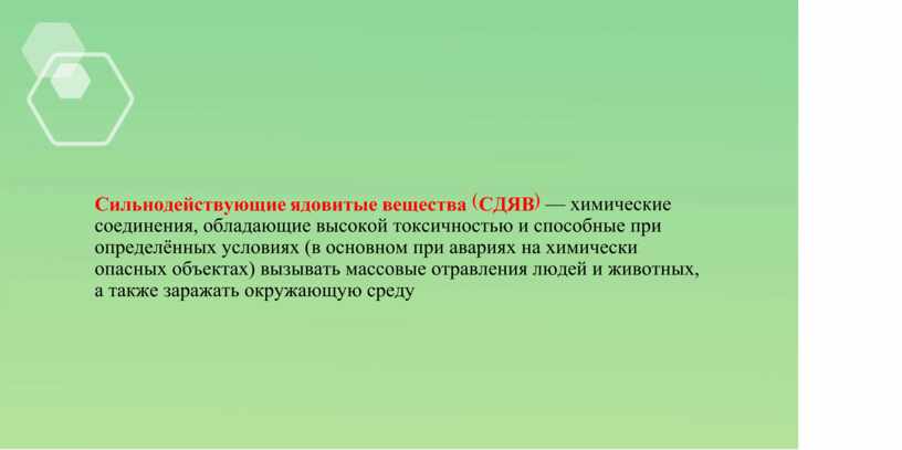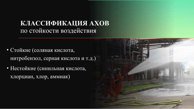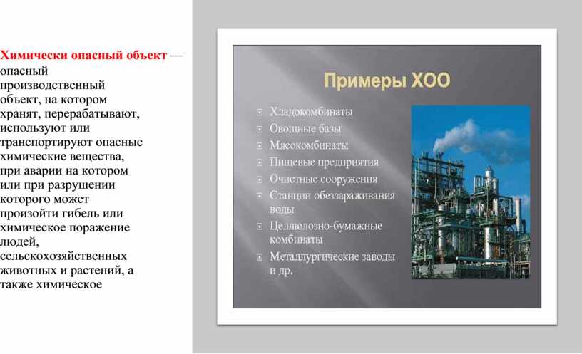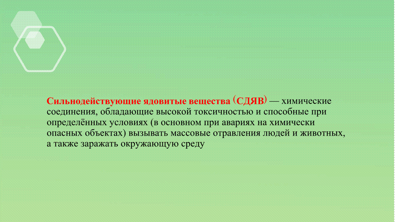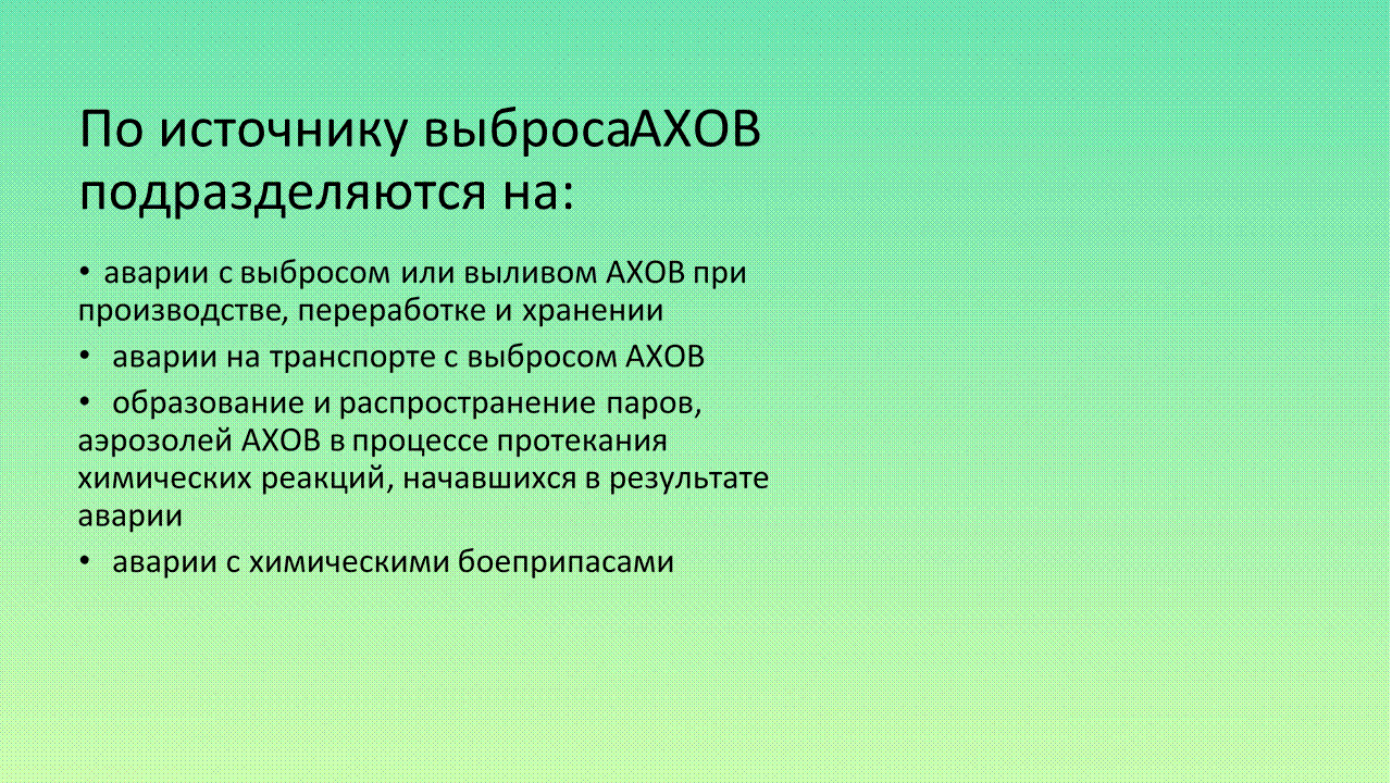 Аварийно химически опасное вещество (АХОВ) – опасное химическое вещество, применяемое в промышленности, сельском хозяйстве, при аварийном выбросе (разливе) которого может произойти загрязнение окружающей среды, поражение людей и живой природы
