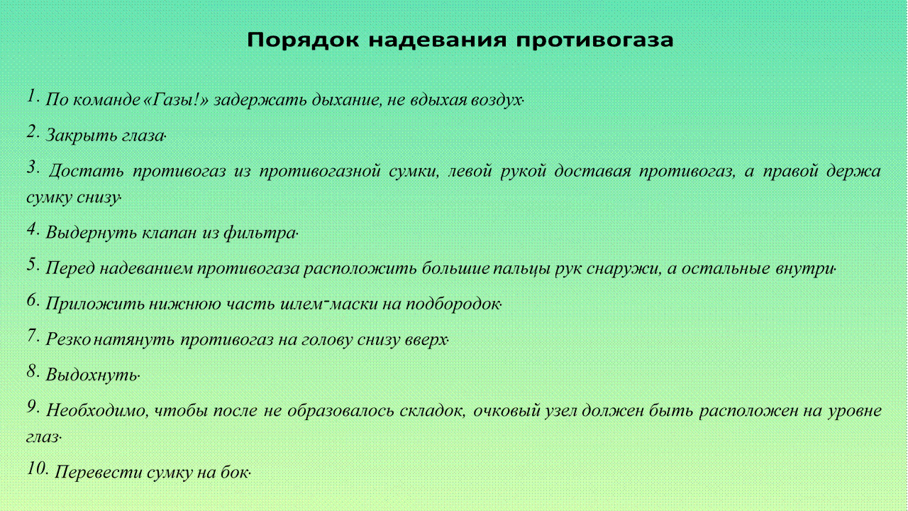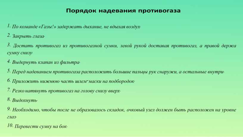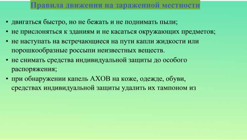 • не снимать средства индивидуальной защиты до особого распоряжения;