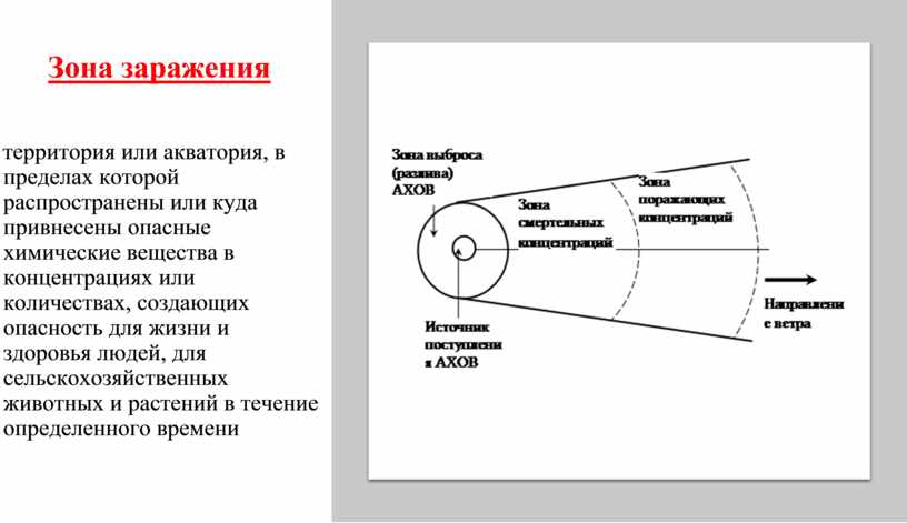заражения перпендикулярно направлению ветра, на расстояние не менее 1,5 км от