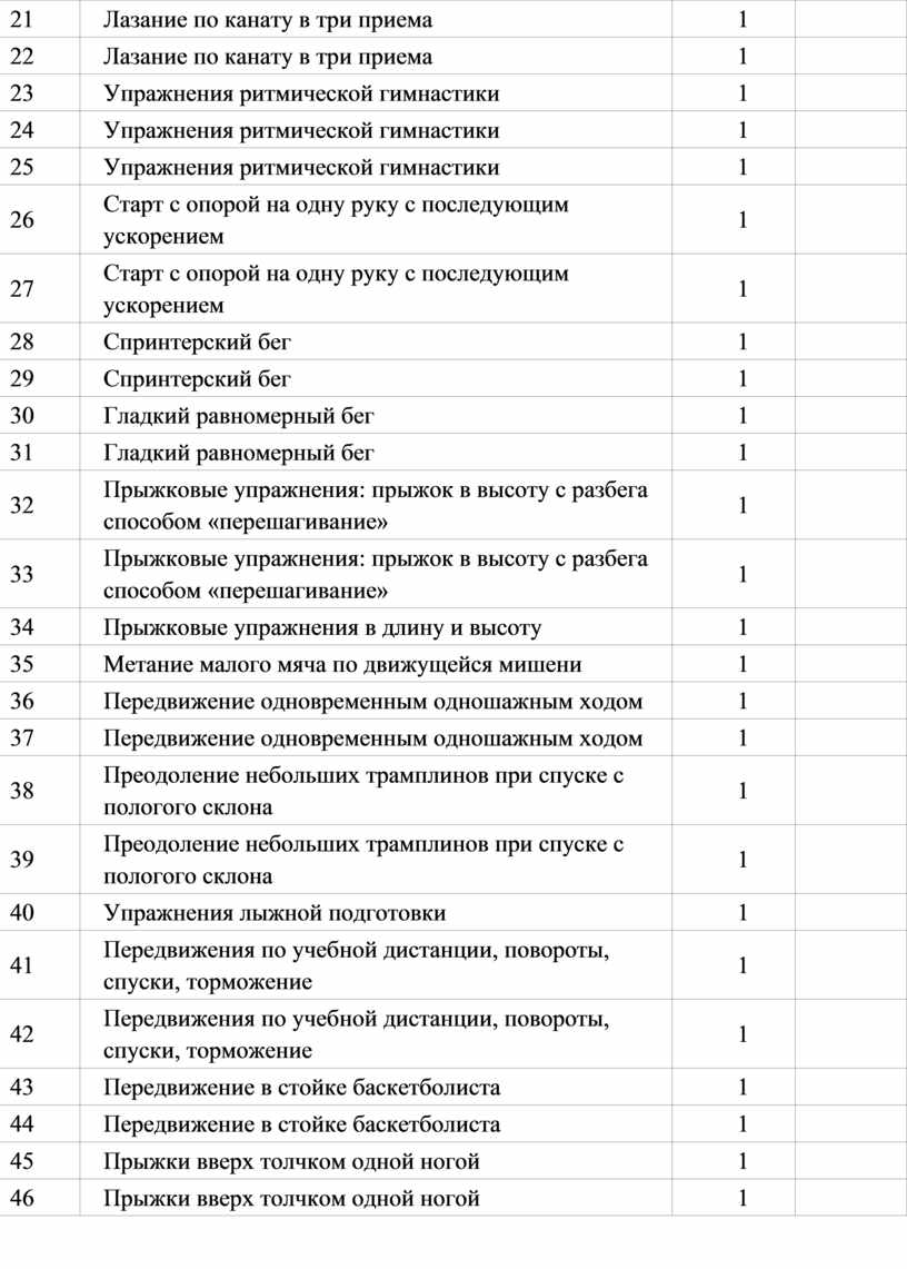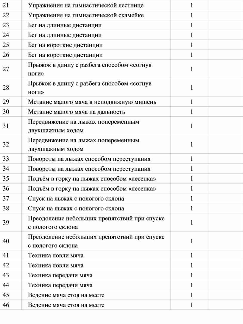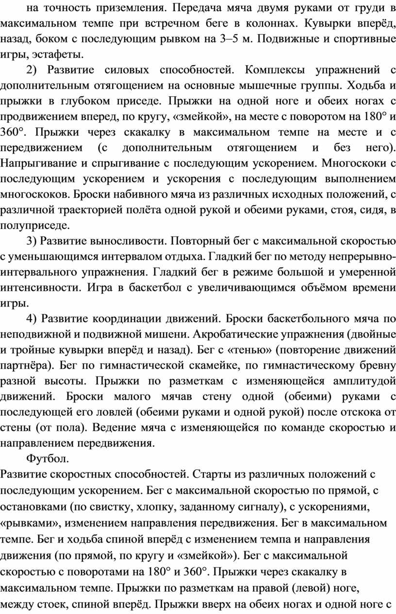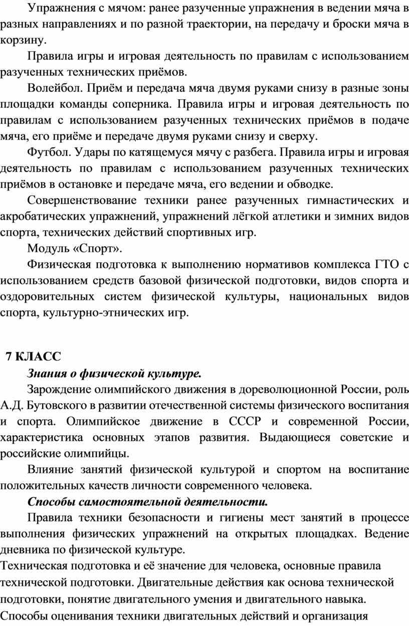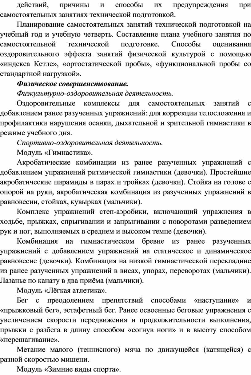 Совершенствование техники ранее разученных гимнастических и акробатических упражнений, упражнений лёгкой атлетики и зимних видов спорта, технических действий спортивных игр.