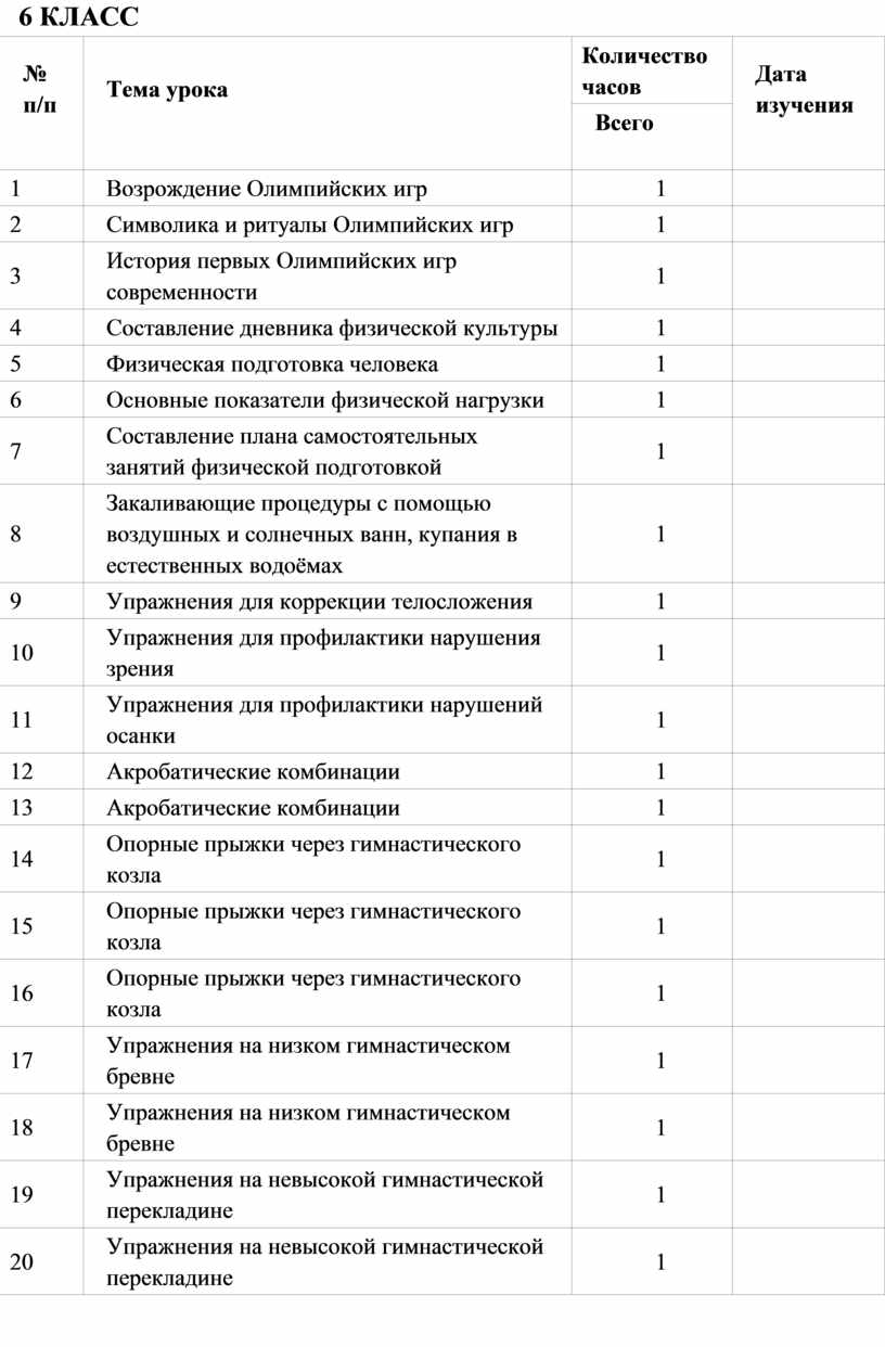 Составление дневника физической культуры.