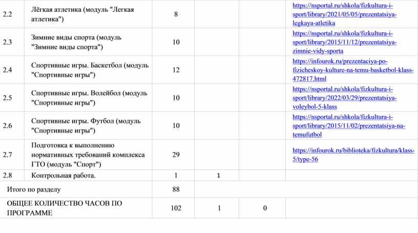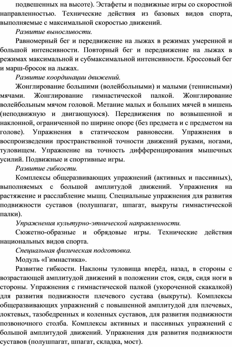 Модуль «Спорт» может разрабатываться учителями физической культуры на основе содержания базовой физической подготовки, национальных видов спорта, современных оздоровительных систем. В рамках данного модуля представлено примерное содержание «Базовой физической подготовки».