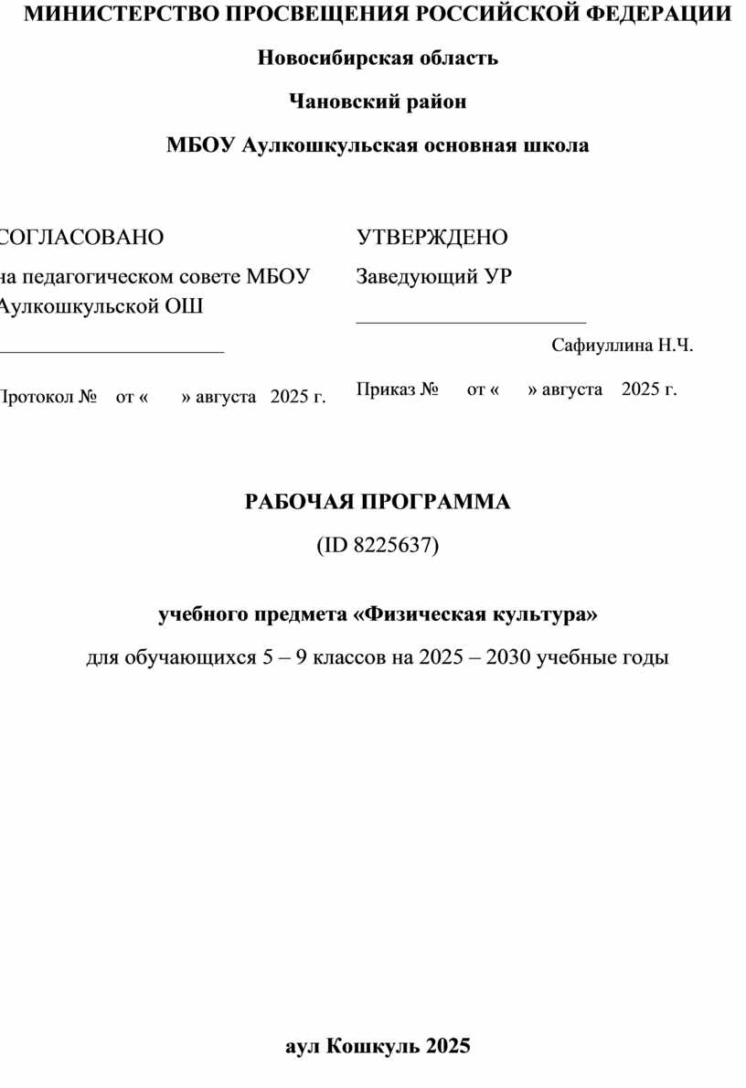 Протокол № от « » августа 2025 г.
