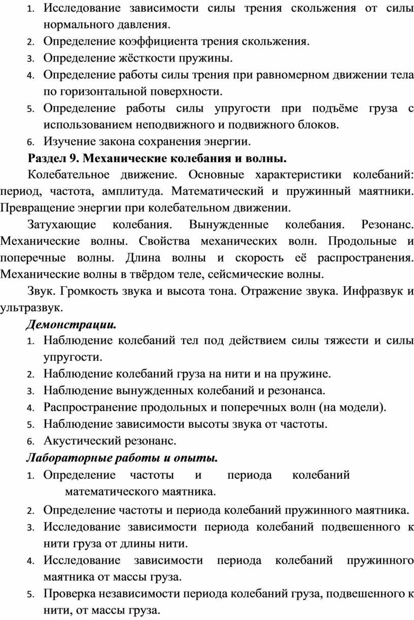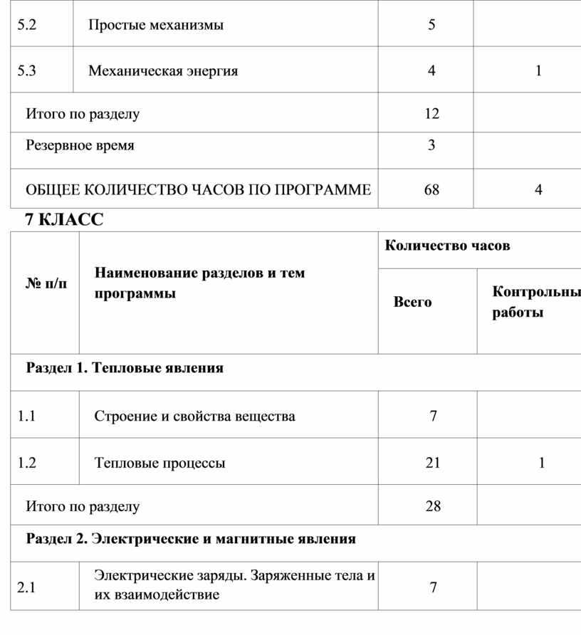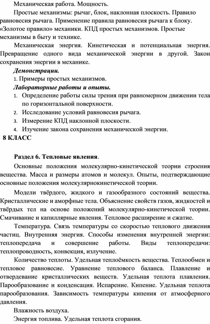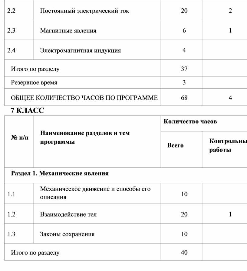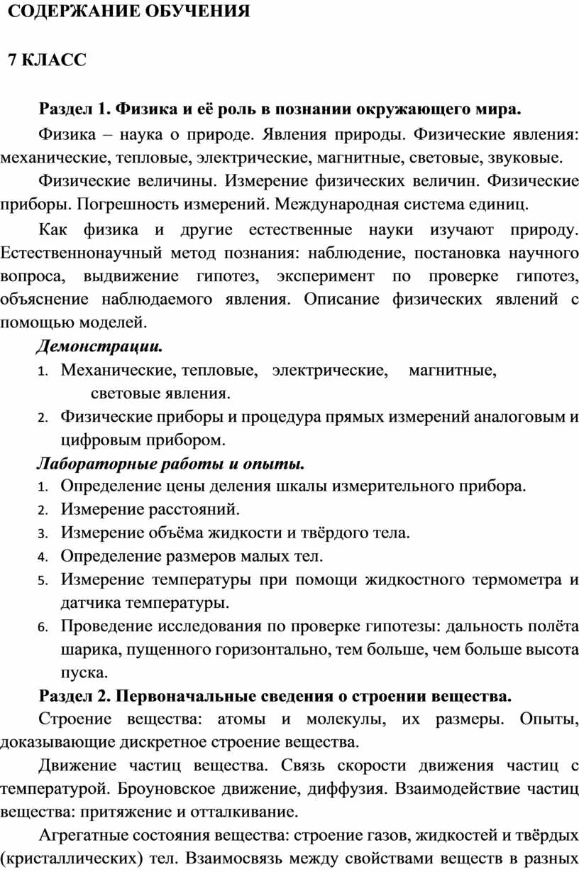 Программа по физике устанавливает распределение учебного материала по годам обучения (по классам), предлагает примерную последовательность изучения тем, основанную на логике развития предметного содержания и учёте возрастных особенностей обучающихся.