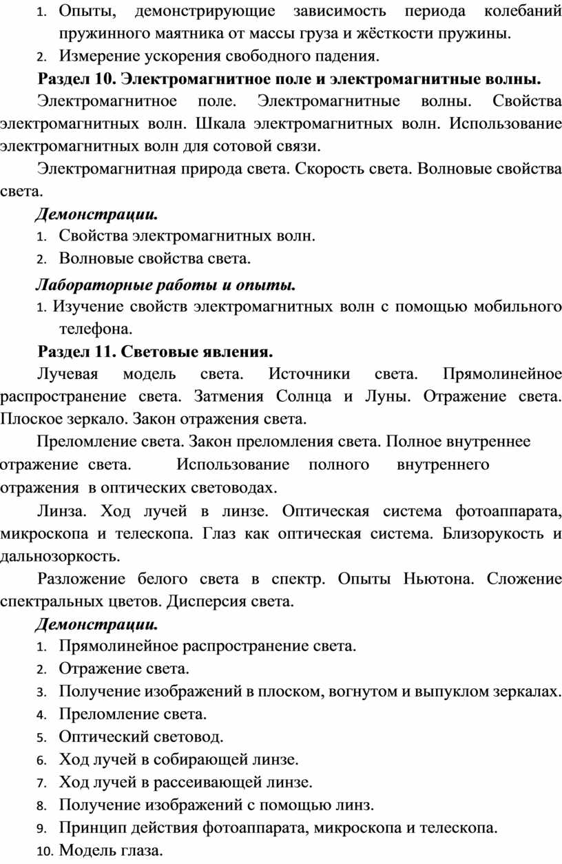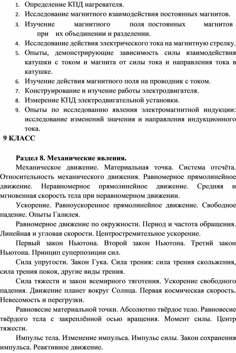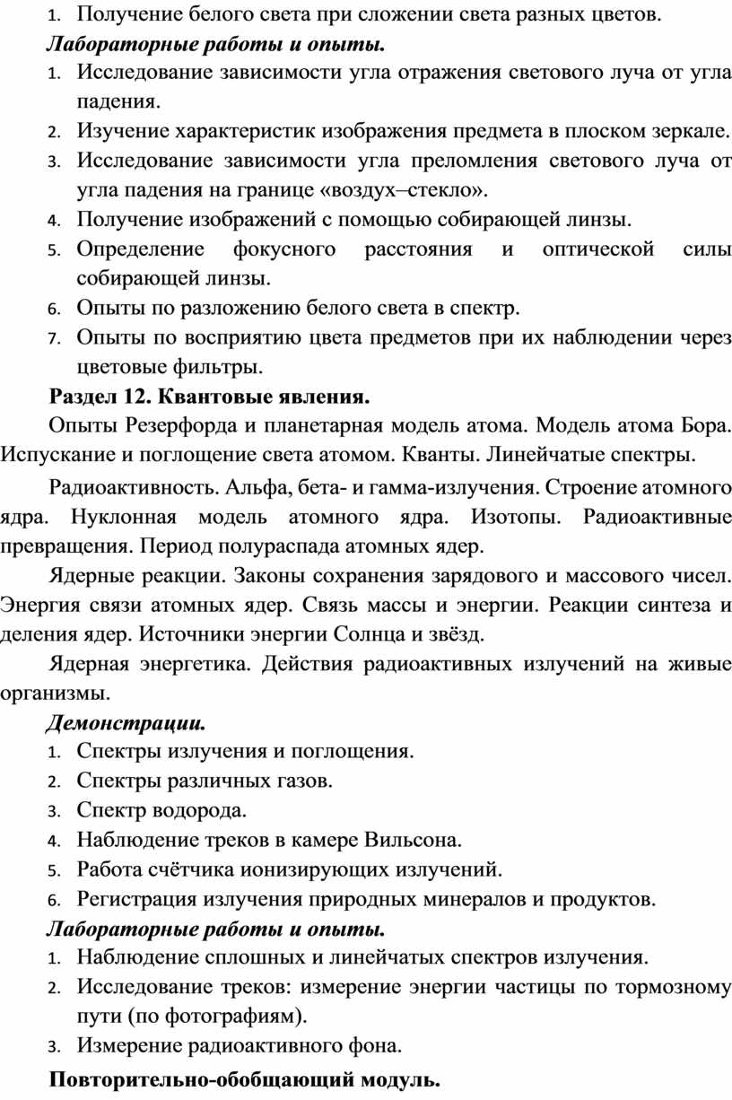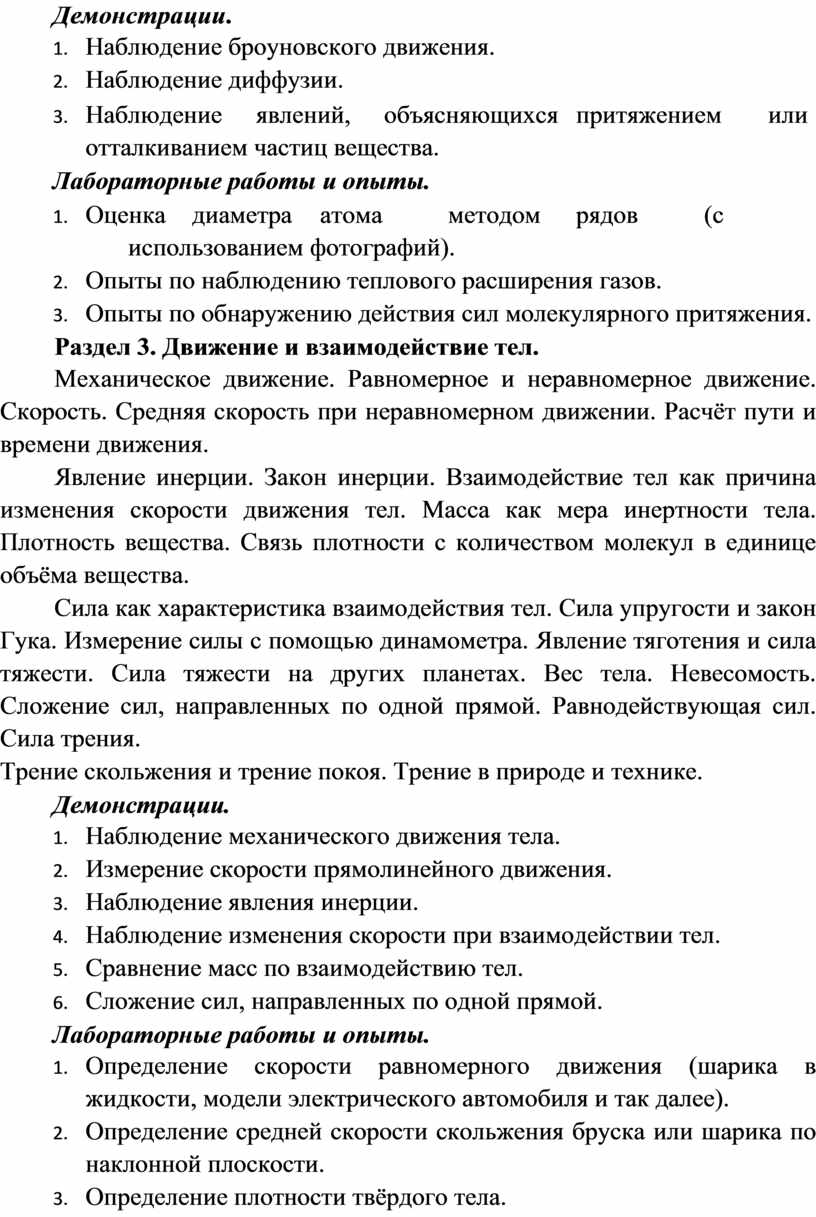 Программа по физике устанавливает распределение учебного материала по годам обучения (по классам), предлагает примерную последовательность изучения тем, основанную на логике развития предметного содержания и учёте возрастных особенностей обучающихся.