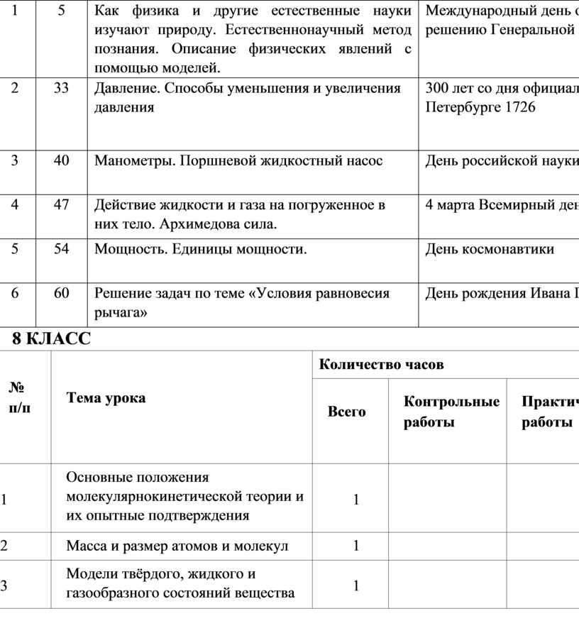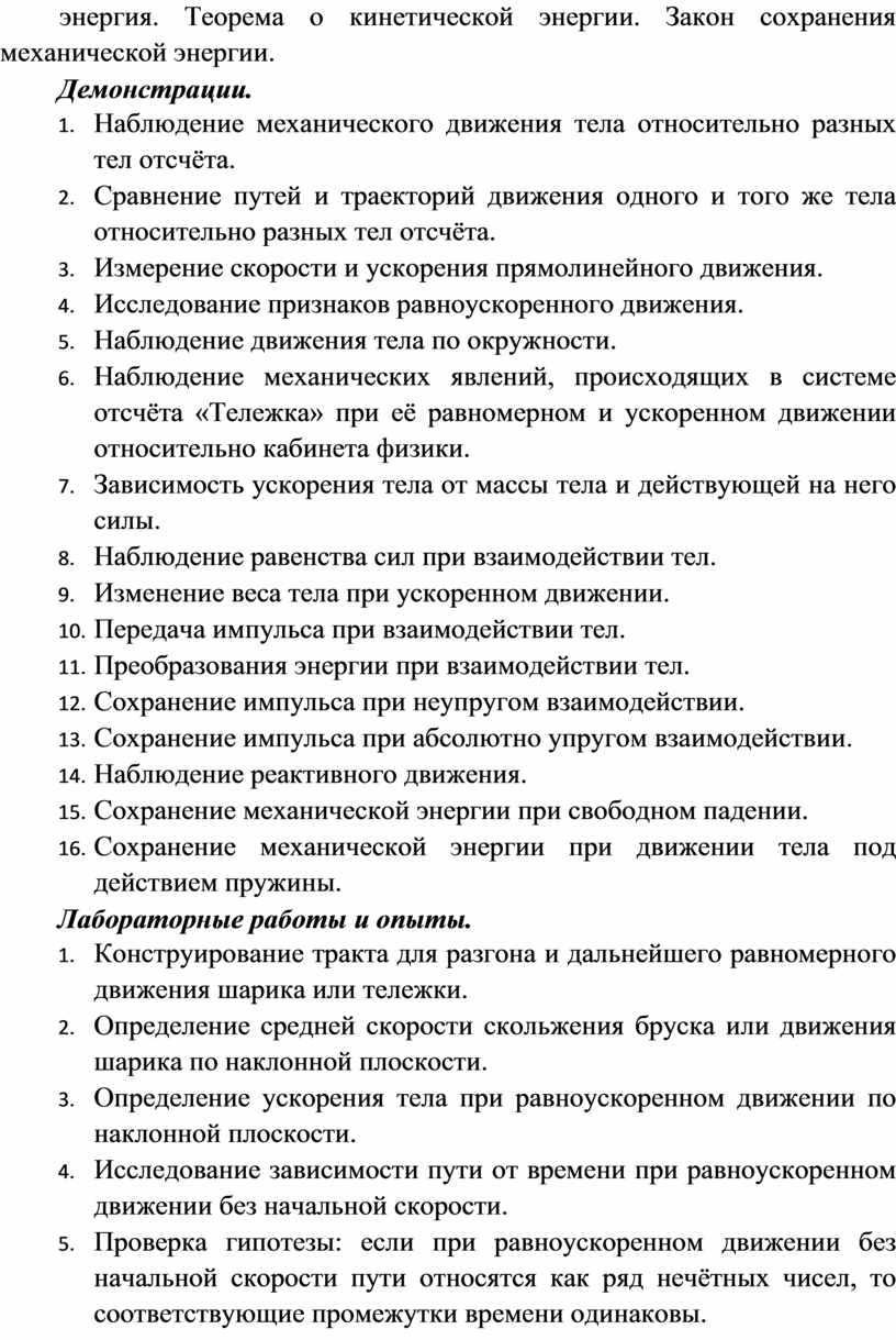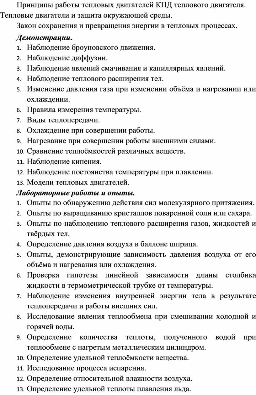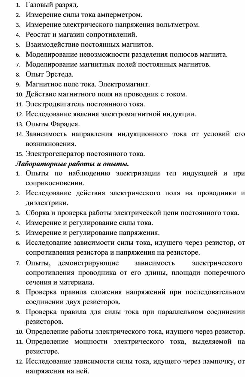 лабораторных работ и опытов носит рекомендательный характер, учитель делает