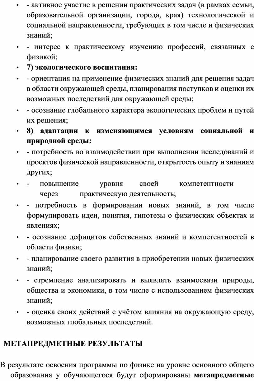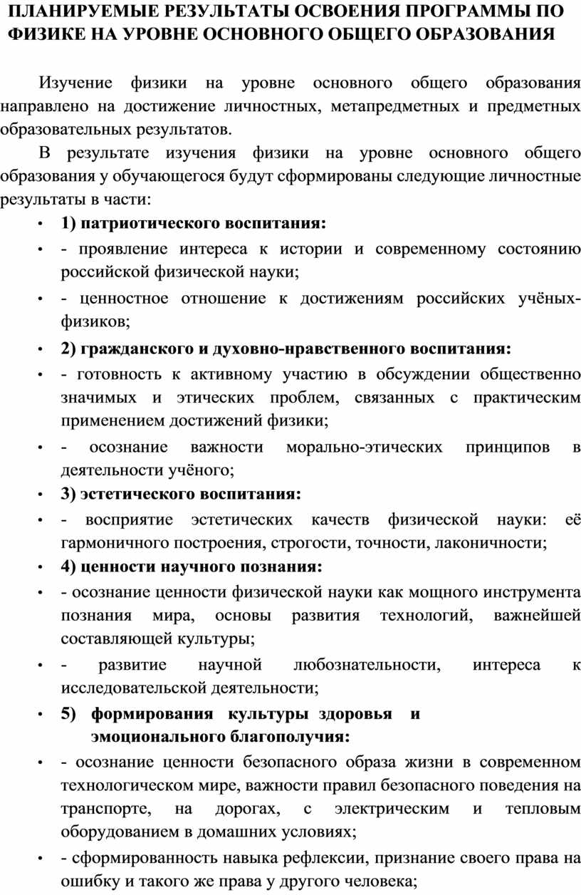 Содержание программы по физике направлено на формирование естественнонаучной грамотности обучающихся и организацию изучения физики на деятельностной основе. В программе по физике учитываются возможности учебного предмета в реализации требований ФГОС ООО к планируемым личностным и метапредметным результатам обучения, а также межпредметные связи естественнонаучных учебных предметов на уровне основного общего образования.