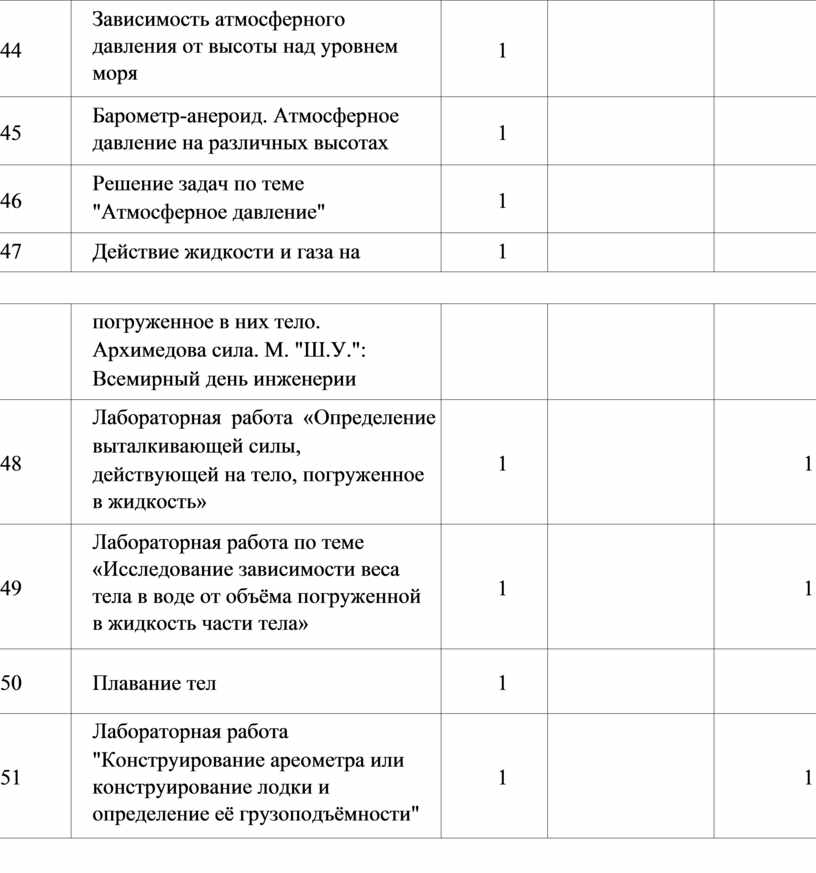 5. Конструирование ареометра или конструирование лодки и определение её грузоподъёмности.