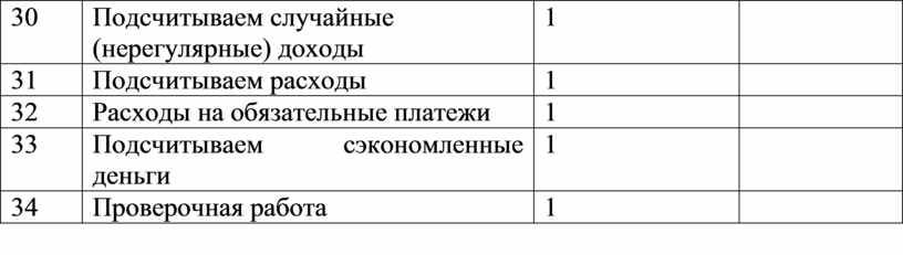 Финансовая грамотность (18, 20, 22, 24, 26, 28, 30, 32 занятия): бюджет, уровни государственного бюджета, семейный бюджет, заработная плата, пенсия, дополнительные доходы (выигрыш, клад, пособия). Обязательные, желаемые и непредвиденные расходы. Налоги. Экономия семейного бюджета.