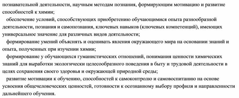 познавательной деятельности, научным методам познания, формирующим мотивацию и развитие способностей к химии;